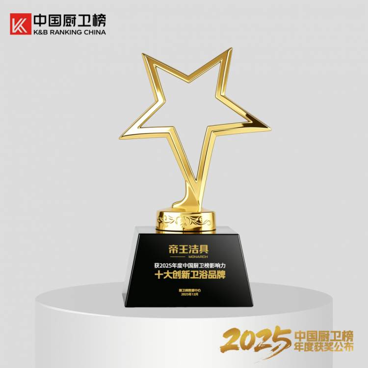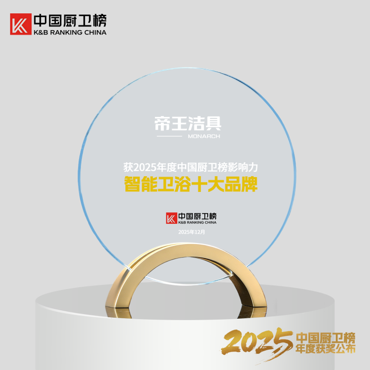 近日,“2025中国厨卫榜”榜单正式发布。帝王洁具凭借其深厚的品牌积淀、持续的创新动力与出色的产品表现,一举荣获“卫浴十大品牌”、“年度消费者喜爱品牌”、“十大创新卫浴品牌”、“智能卫浴十大品牌”、“浴室柜十大品牌”五项大奖,成为本届榜单中备受瞩目的焦点。