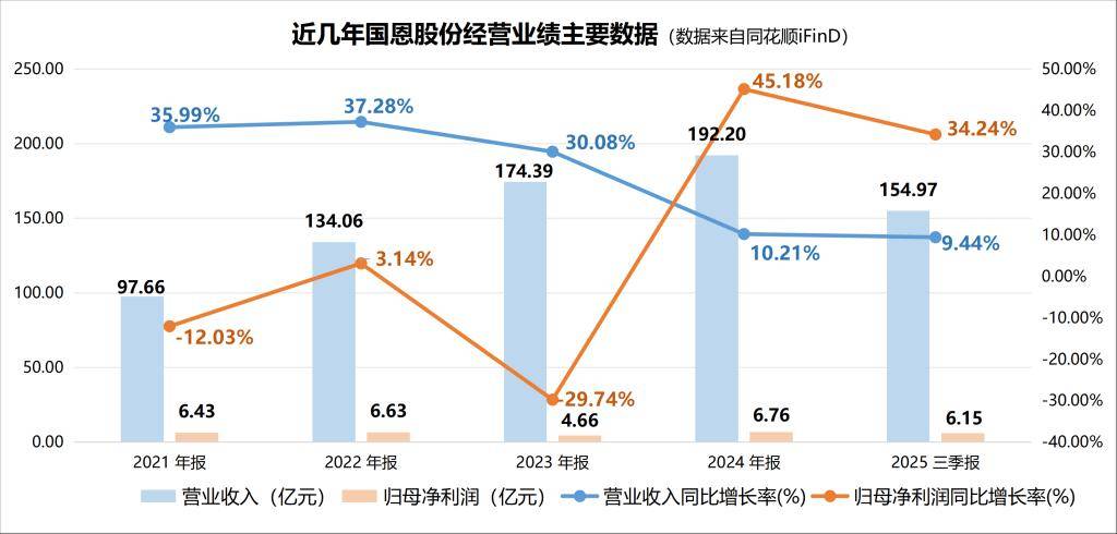 2025年前三季度,公司实现营业总收入154.97亿元,同比增长9.44%;归母净利润6.15亿元,同比增长34.24%;扣非净利润5.97亿元,同比增长43.61%;经营活动产生的现金流量净额为4.03亿元,同比下降0.68%。