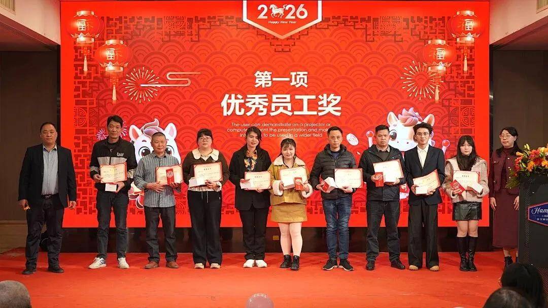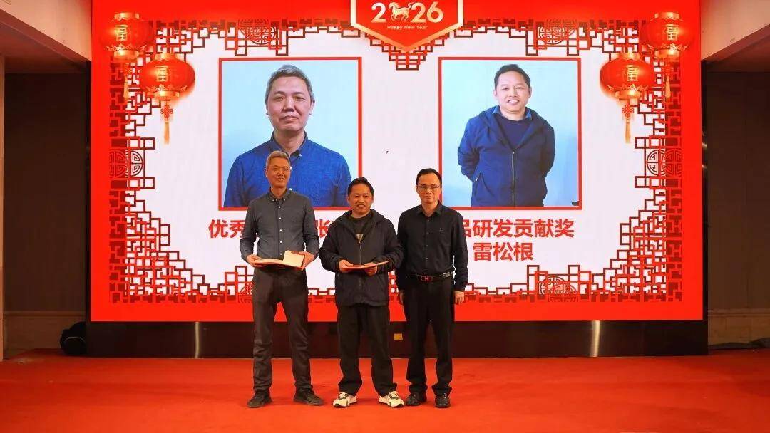 晚宴上,碧丽隆重举行2025年度优秀员工、优秀主管及优秀团队颁奖仪式。碧丽总经理刘木虎、营销总监王德纯等集团领导与受邀嘉宾亲自为获奖者颁发证书与奖金,对他们过去一年里的辛勤拼搏与突出贡献给予充分肯定。