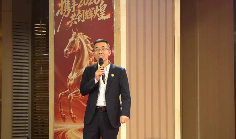主持人热情开场后,碧丽副总经理王逸上台致辞。他在致辞中回望过去一年,重点提及碧丽花岗岩石漆在销售体系升级与客户服务优化方面取得的亮眼突破,全面总结了集团2025年的发展成果,并清晰擘画了2026年的发展蓝图。