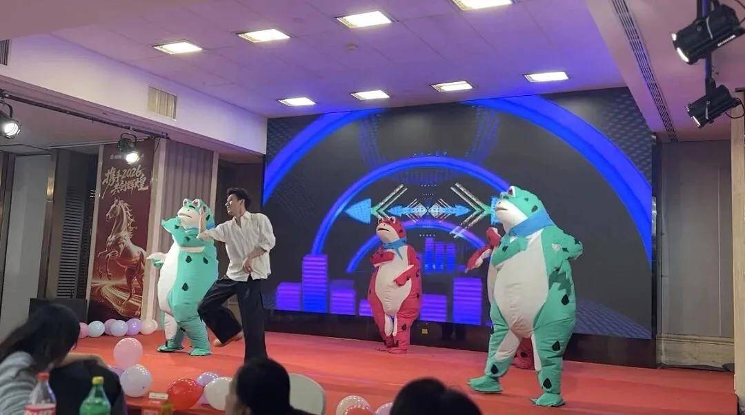 青蛙舞《野狼 disco》诙谐有趣,憨萌俏皮的姿态尽显团队的欢乐活力与创意。