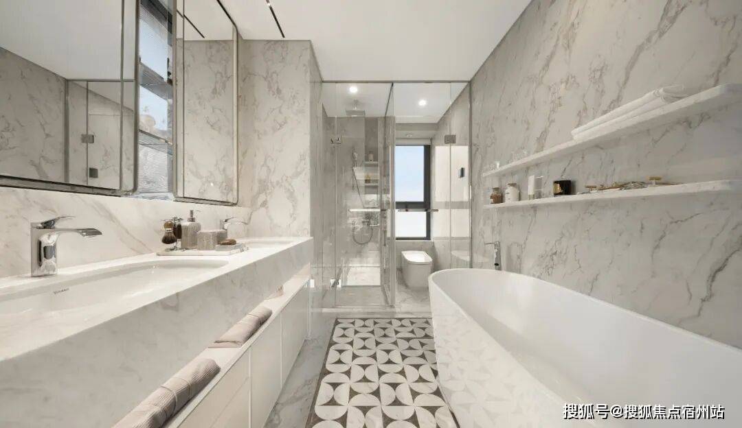卫浴空间:采用杜拉维特台盆、汉斯格雅花洒五金、主卫伊奈/次卫恩仕智能一体马桶