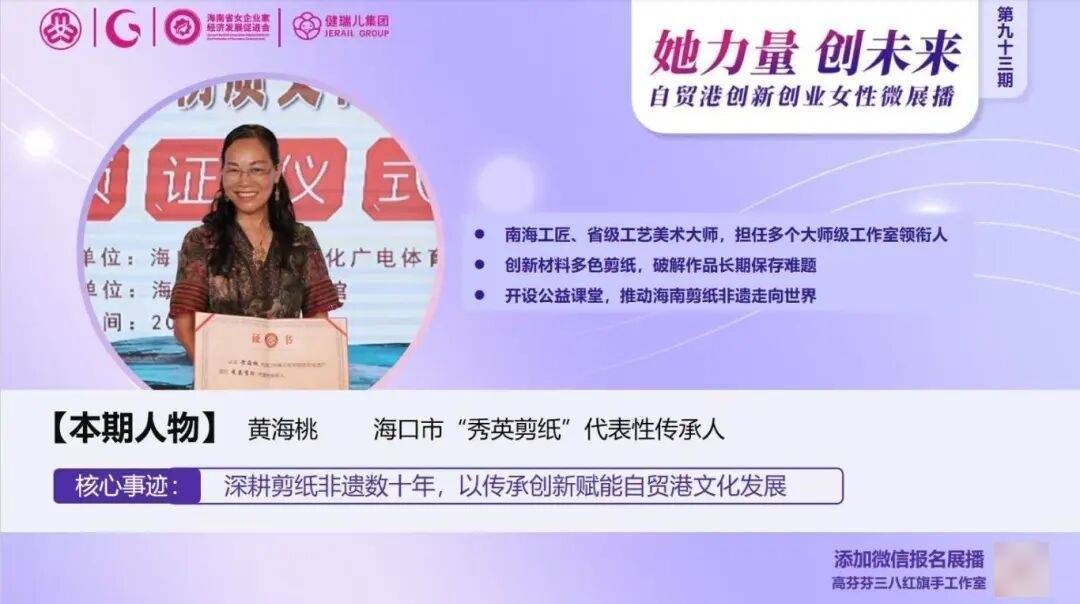 海南自贸港已于2025年12月18日正式封关,这片热土正以开放之姿拥抱世界!在这波澜壮阔的时代画卷中,海南省女性创新创业者以“敢闯敢试、敢为人先”的魄力,成为自贸港建设中最鲜活的“她力量”。在海南省妇联指导下,高芬芬三八红旗手工作室特别策划“她力量·创未来”自贸港女性创新创业系列微展播,用100天、100个奋斗故事,向世界展示自贸港的“她风采”!